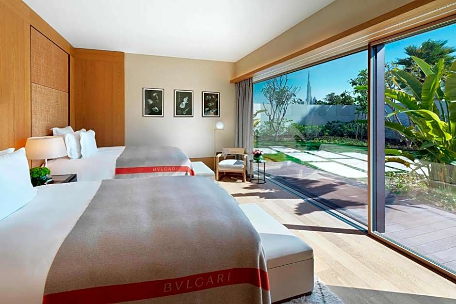 The One-Bedroom Bvlgari Suite has a spacious living area, magnificent marble bathroom, separate powder room and a cozy work space for those who need it. The suite has a stunning wrap-around terrace